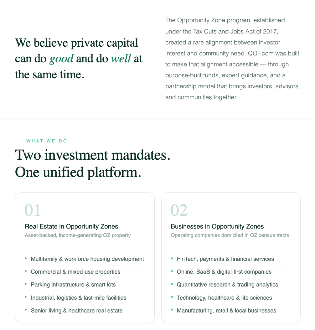 QOF: QUALIFIED OPPORTUNITY FUND