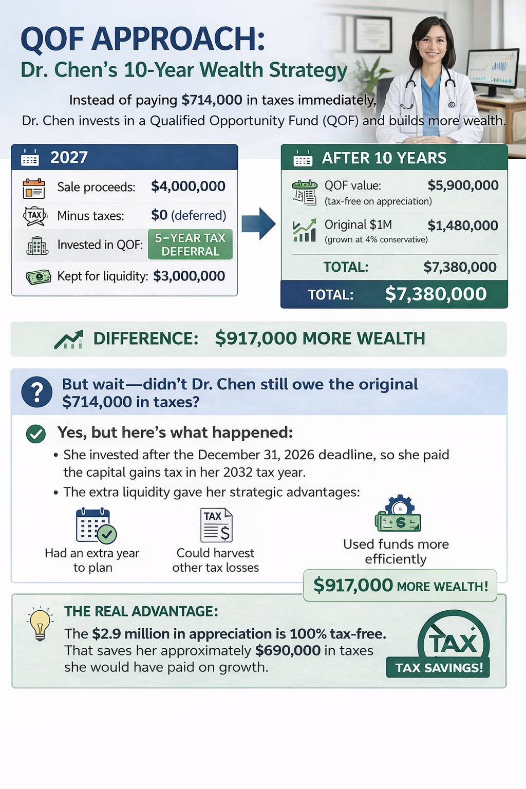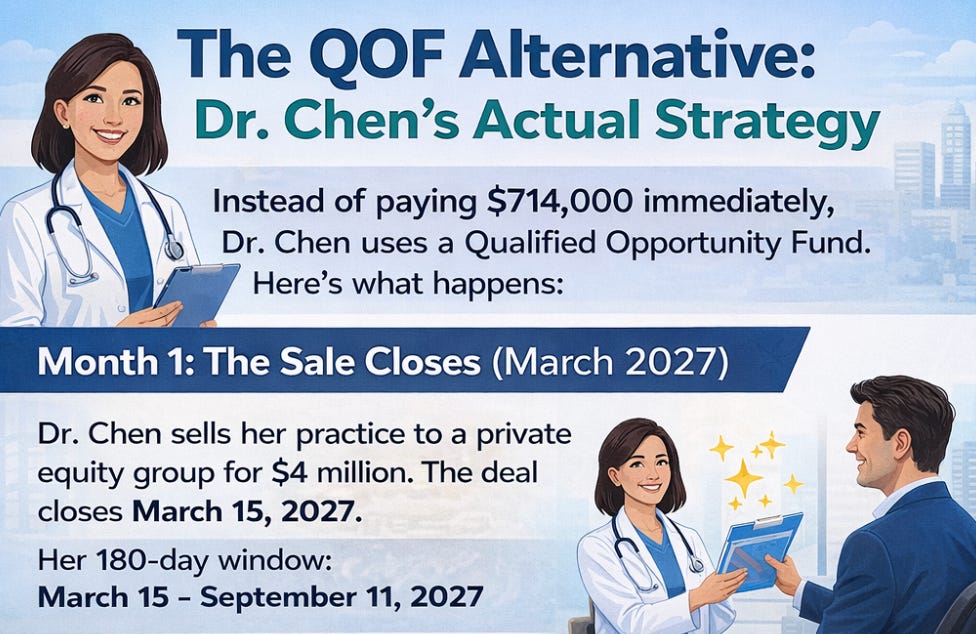 Instead of paying $714,000 immediately, Dr. Chen uses a Qualified Opportunity Fund.
